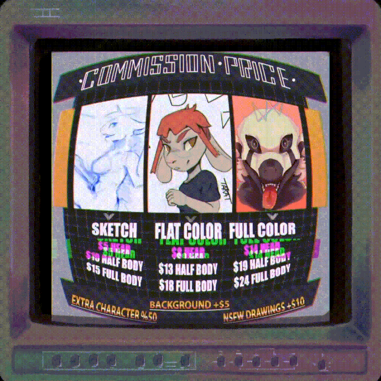 3. _ Taboo fetishesIf you want to add any element to your commission and you don't know if it has an extra price, a different price, or if it is prohibited, you can consult me in my direct messages.REFUNDThe refund of a commission is only possible when no work has been done yet.PAYMENT AND OF COMMISSION PROCESSESPayments are through Paypal.Payment must be completed first in order to start the commission.The phases of the commission are as follows:1.- Simple sketch2.- Detailed sketch3.- Lineart4.- Flat colors5.- RenderingMaximum 5 revisions during the illustration process (extreme changes will be charged extra).Commissions are usually completed within a maximum of two weeks (depending on the commission).